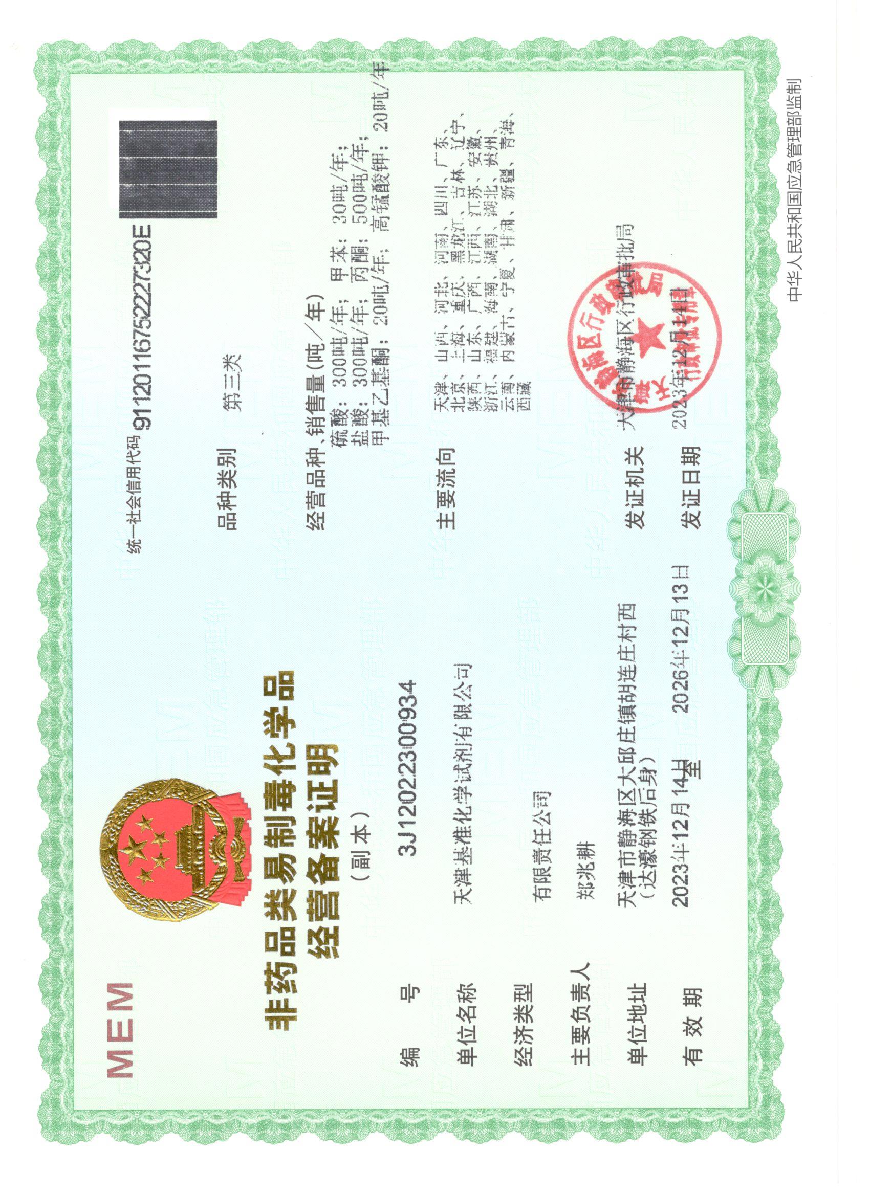 天津基準(zhǔn)化學(xué)試劑有限公司成立于2003年,是一家集研發(fā)、生產(chǎn)、銷售于一體的化工企業(yè),我們致力于為生物醫(yī)藥、精細(xì)化工、食品工業(yè)、